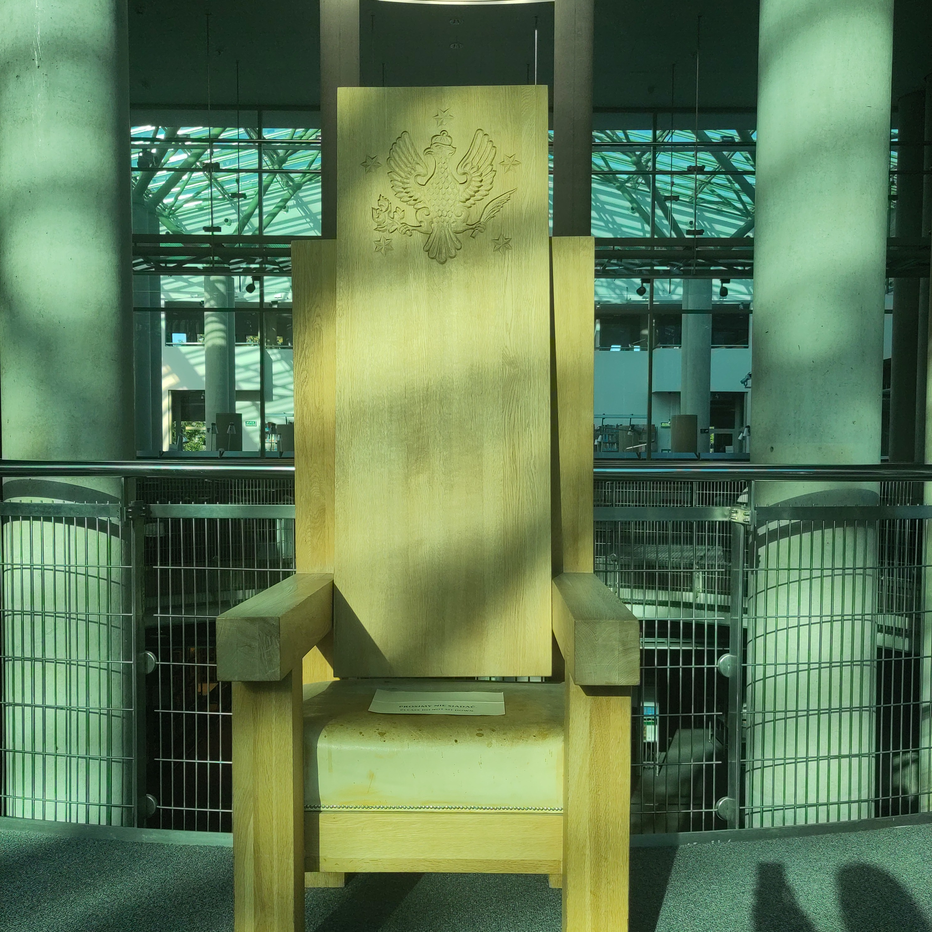 As you approach, a dark shadow is cast upon the chair. No, no, this doesn't seem right. You turn around.