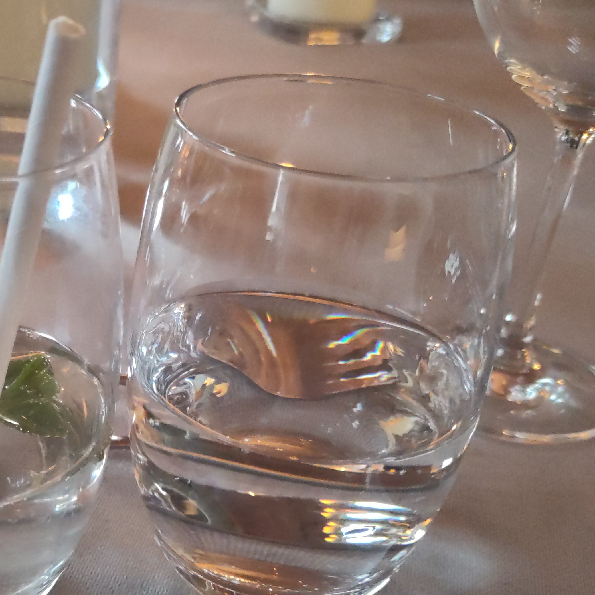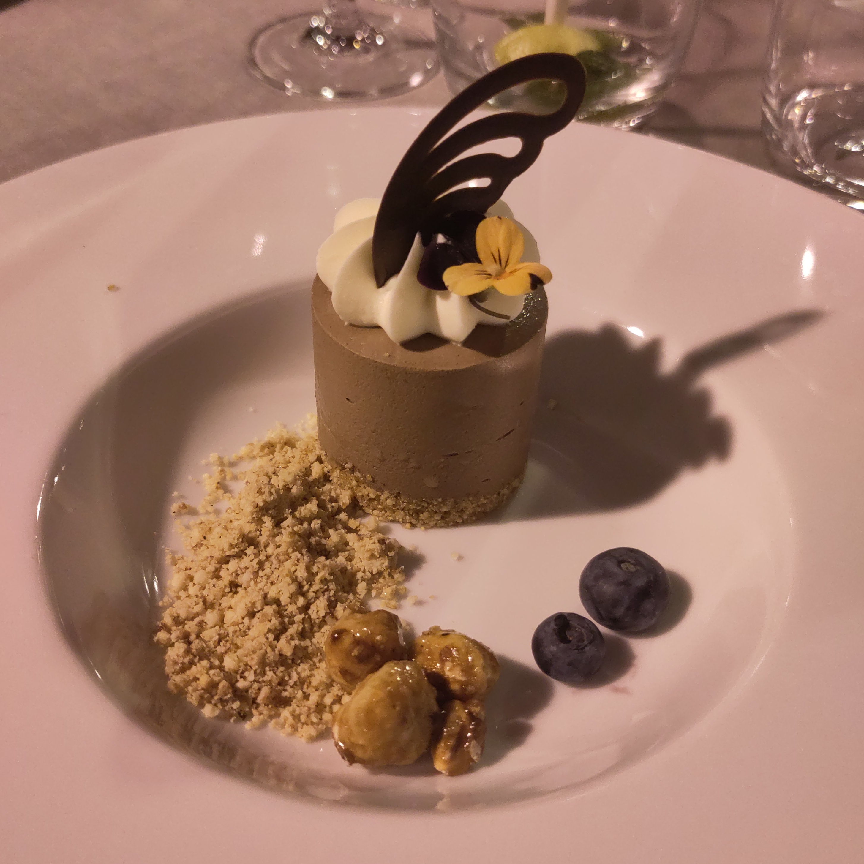 Waiters are approaching each participant individually to ask for preference in wine, and who would like a vegetarian or vegan meal.